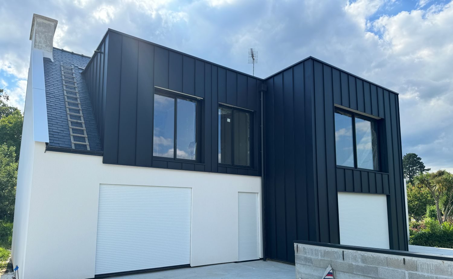Réalisation contemporaine - construction traditionnelle enduite 1 étage.